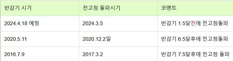 2024년 3월 10일 작성 글입니다. 비트코인이 사상 처음으로 반감기 이전에 전고점을 통과 했다. 그 이유가 무엇인가를 해설한다. 비트코인 반감기 시기 전고점 돌파시기 비교 반감기전에 전고점을 통과한것은 처음있는 일이다. 왜그러한가? 분석한다. 정확하게는 비트코인은 경기에 비례해서 상승한다. 4년 주기 반감기 때문이 아니다. 덧붙혀 강 호재와 관련이 있다. 가령 ETF 승인으로 하루 4000억원 유동성 유입이 비트코인 시세를 쌍두마차로 끌어올리고 있다. 마치 4년주기설은 음력과 비슷하고 경기주기설은 양력과 비슷하다. 즉 음력은 틀렸다. 윤달이 필요하다. 양력도 1일 정도는 4년에 한번씩 조정이 필요 하기는 하다. 또 중요한 것은 비트코인 시세 주기는 반감기 때문만 이라고 전혀 말할수는 없다. 본인이 계산한 키친 재고 사이클과의 관계다. 이렇듯 키친 재고 사이클과 관계가 있다. 나스닥도 에스엔피도 코스피도 경기가 좋아야 상승하고 천정을 친다. 선무당 잡는 반감기 같은 하류 이벤트 때문이 아니다. 결론 키친사이클 주기는 4년이 아니다. 이보다 짧은 약 3.6년 주기로 움직인다. 매년 정확하게 일치하지는 않으나 평균은